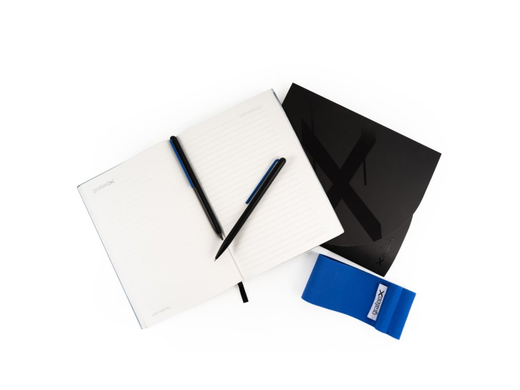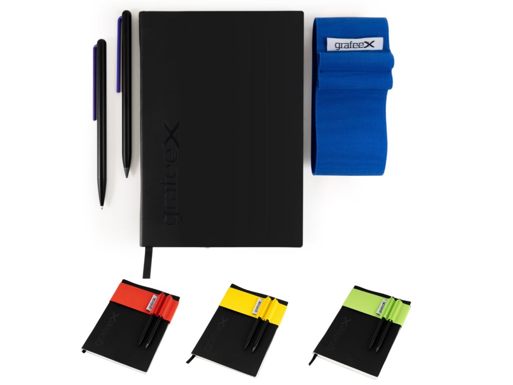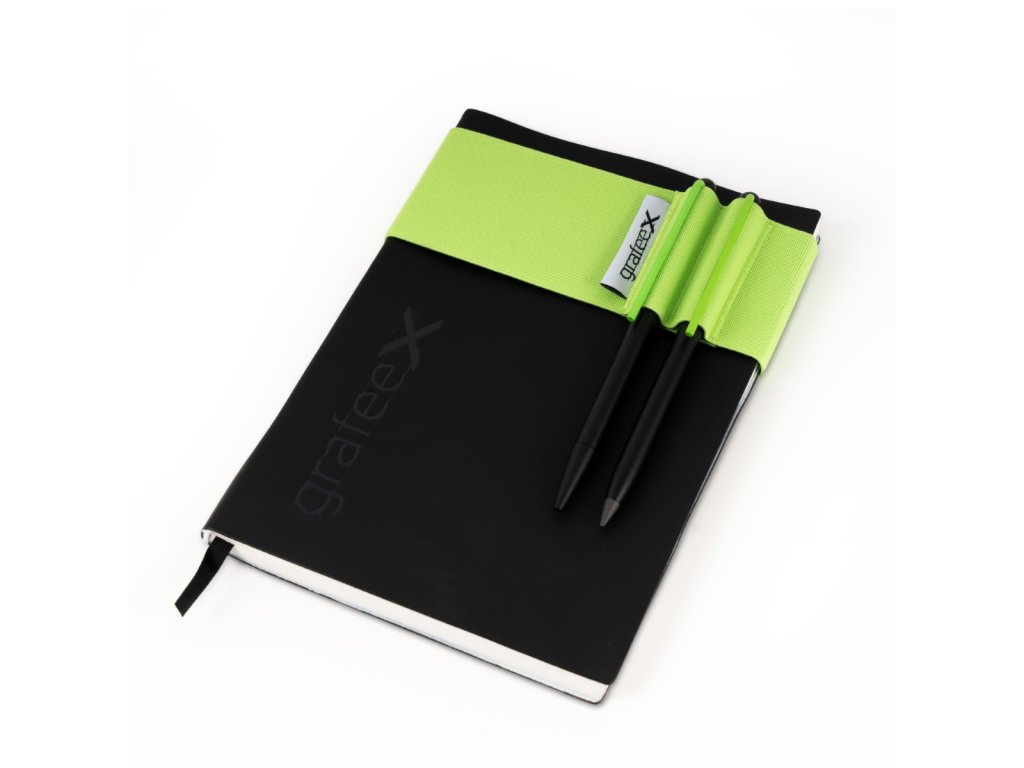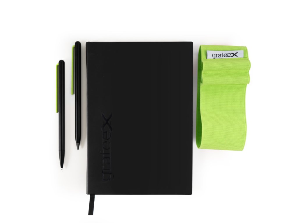 Psací sada Grafeex je určena pro ty, kteří rádi píší, skicují a zaznamenávají nápady pomocí inovativních a ekologických nástrojů. Zápisník má měkký obal a stránky vyrobené z kamenného papíru – revolučního papíru bez obsahu stromů a vody, který je elegantní a zároveň udržitelný.