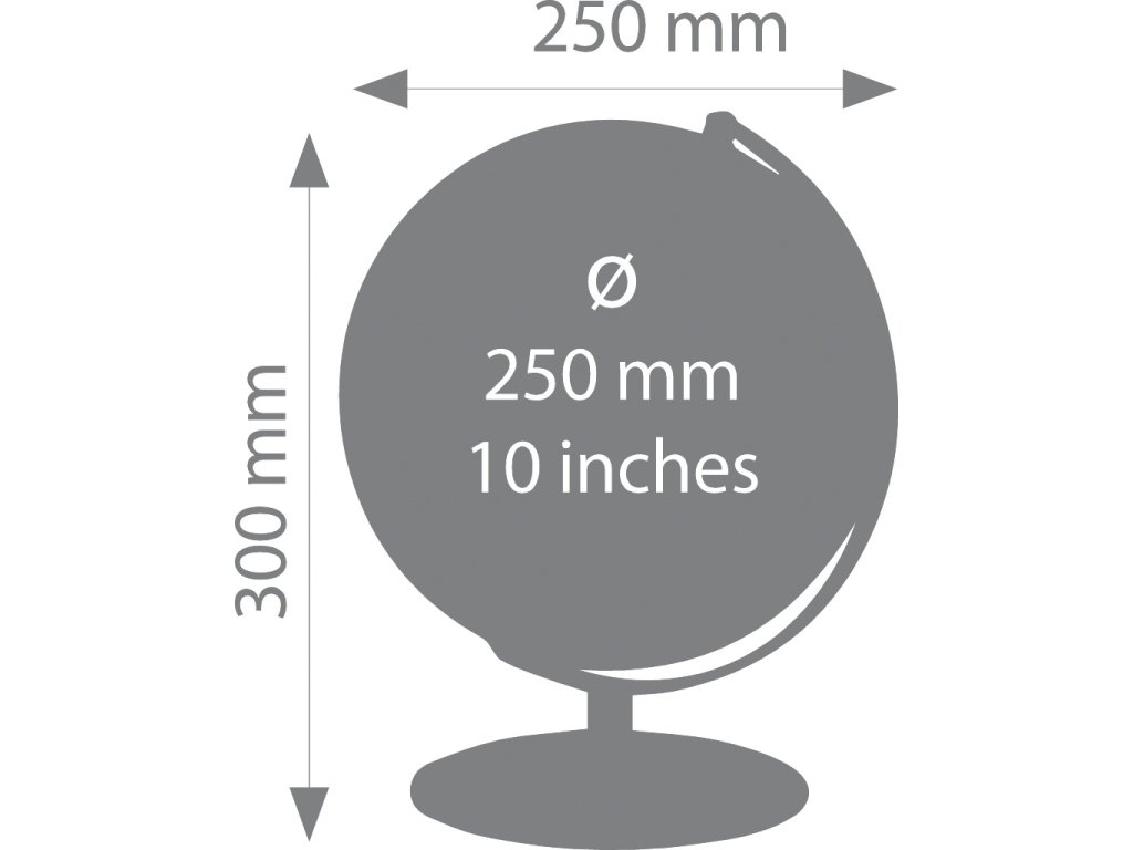 Se svými atraktivními rozměry 250 x 300 milimetrů lze glóbus umístit na různá místa: na stůl, na příborník nebo na polici i do kuchyně.