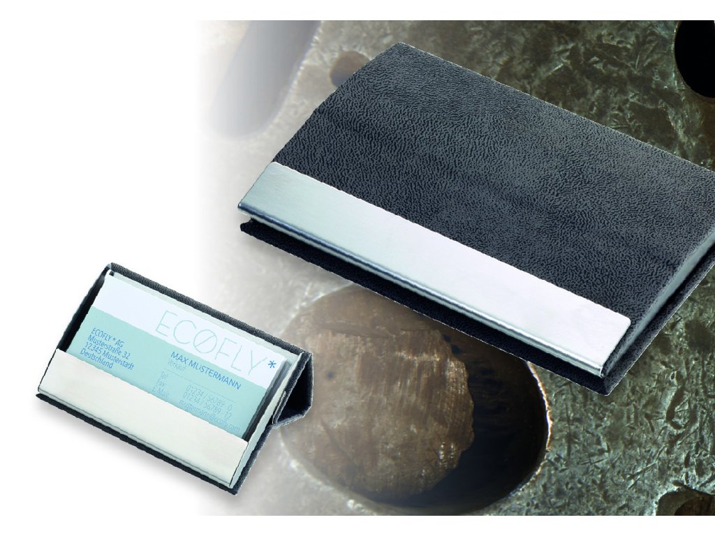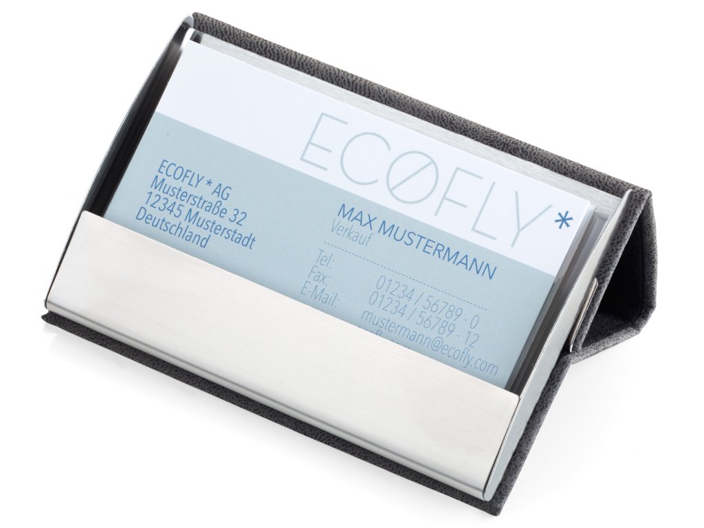 Jako elegantní pouzdro a zároveň jako praktický zásobník na vizitky, který lze nastavit ve dvou úhlech.