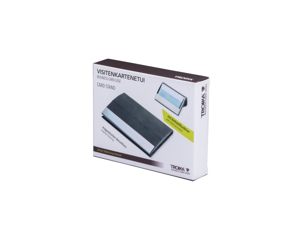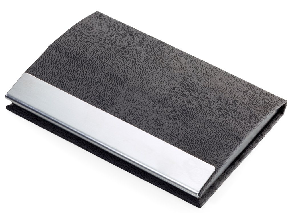 Pouzdro na vizitky, magnetické zavírání, funkce stojánku, umělá kůže/nerezová ocel, šedá