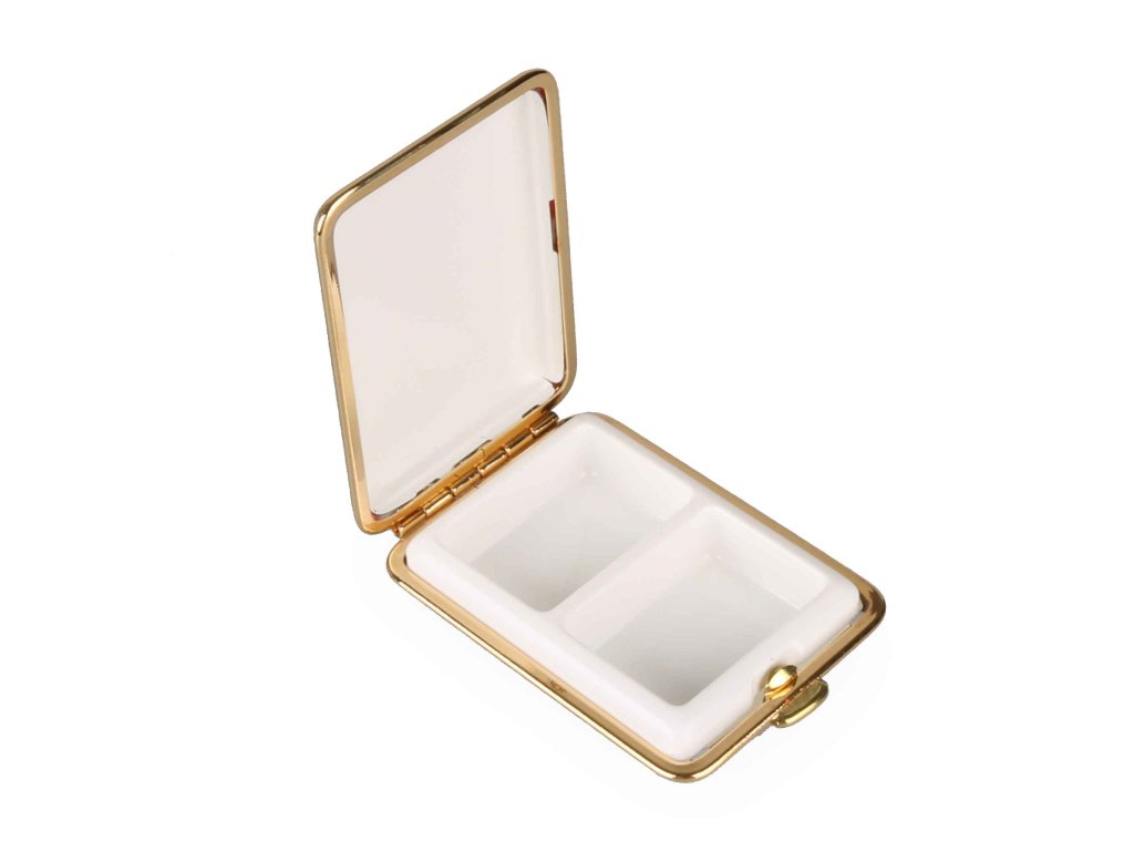 Pouzdro obsahuje celkem dvě přihrádky, které slouží k organizaci léků. Svou velikostí se pohodlně vejde do každé tašky nebo do kapsy. Přední stranu zdobí elegantní logo značky.