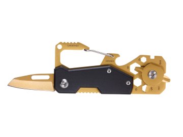 Multifunkční nástroj z nerezové oceli, matný, červená barva, nylonové pouzdro