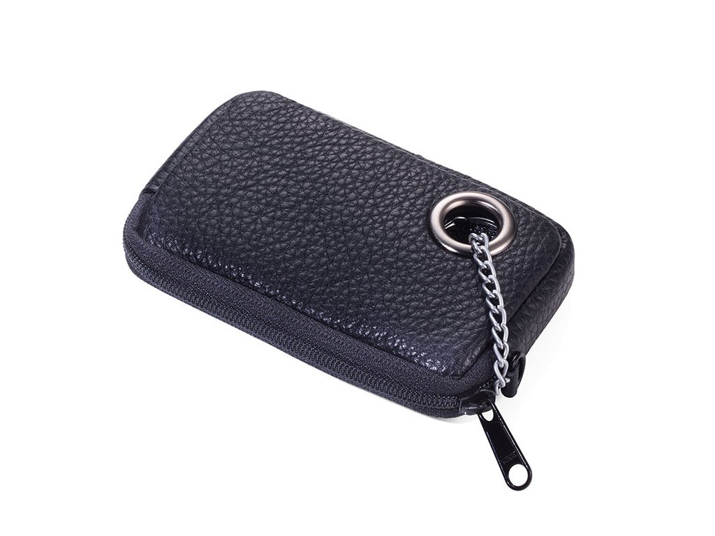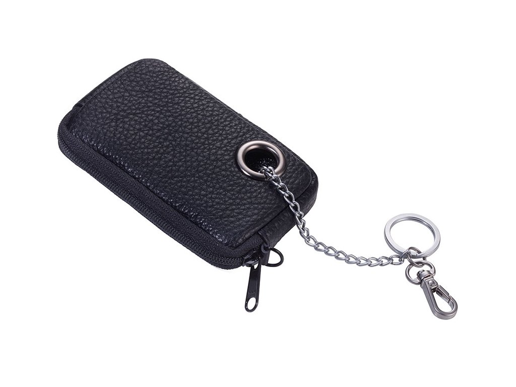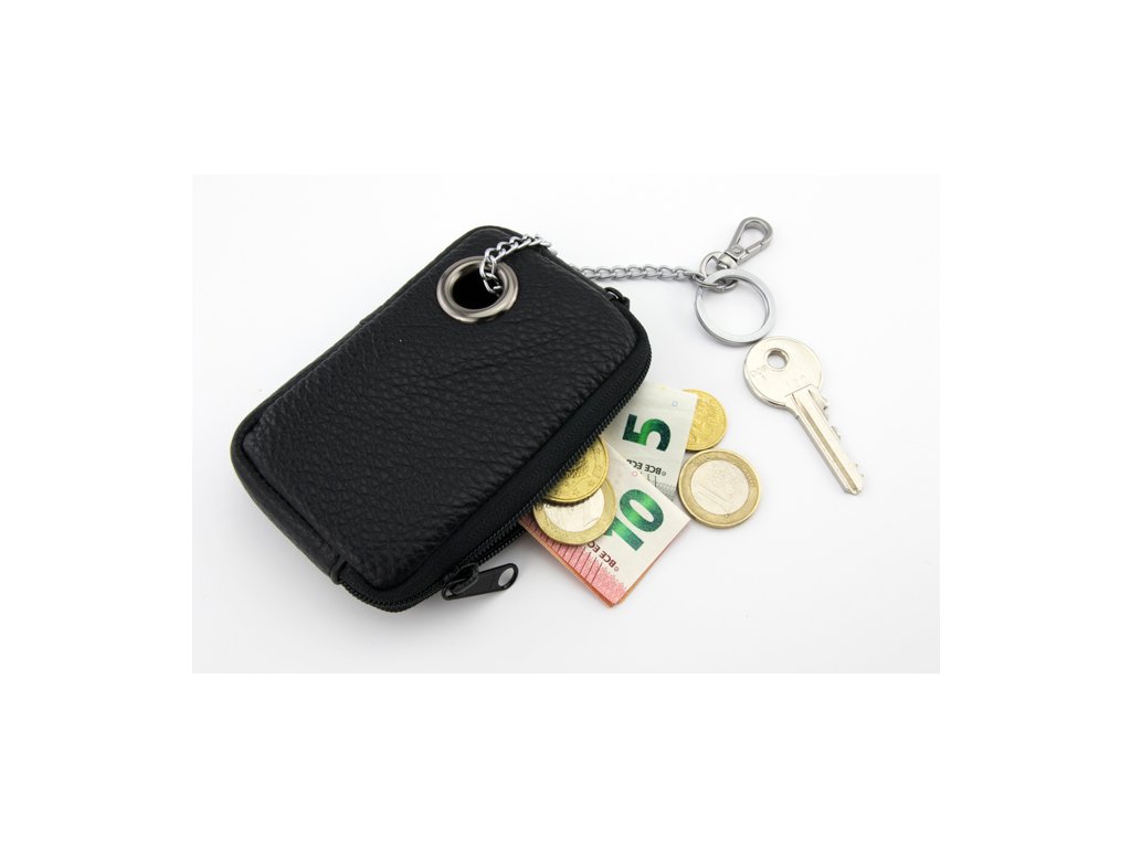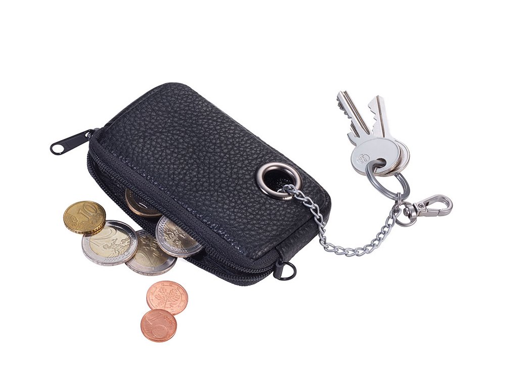 Pouzdro na klíče a mince, zip, karabina, kůže, černá.
