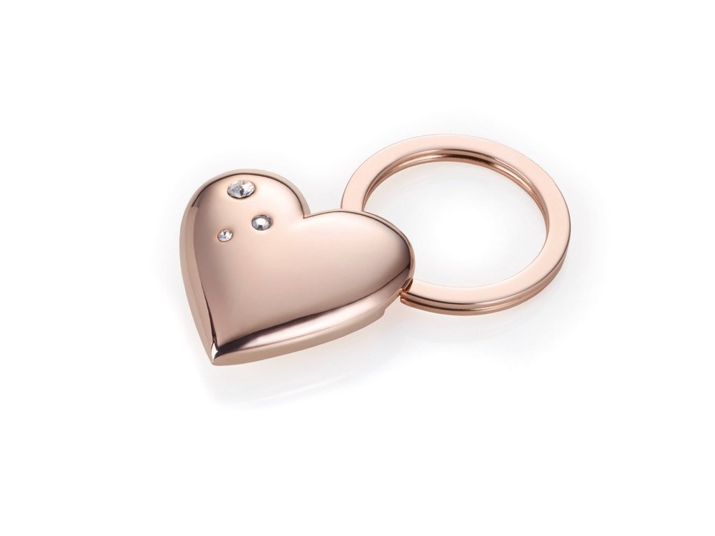 Nezapomenutelná klíčenka s přívěskem ve tvaru srdíčka s kamínky Swarovski jemně růžové barvy.