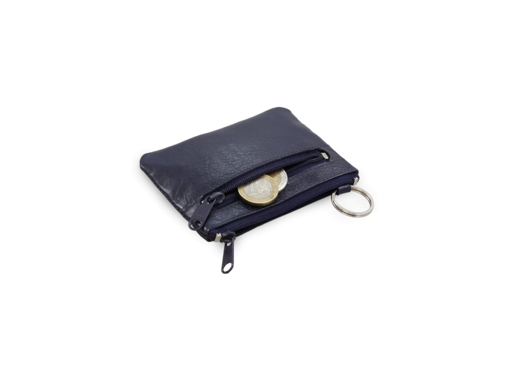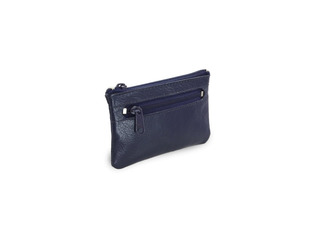 Modrá kožená dvouzipová klíčenka