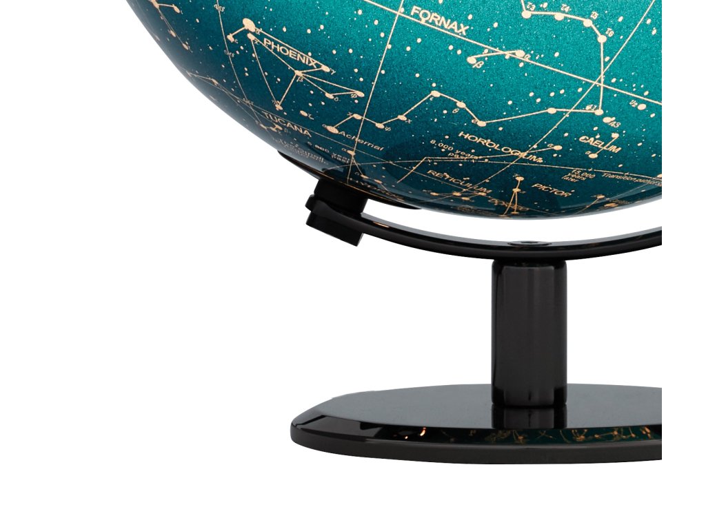 Zeměkoule průměr 25 cm, integrované osvětlení, mapa hvězdného systému, chromová kovová základna, pohyblivá osa, plast/kov, lesklá, černá/stříbrná