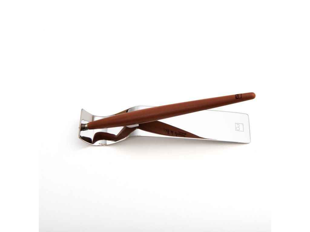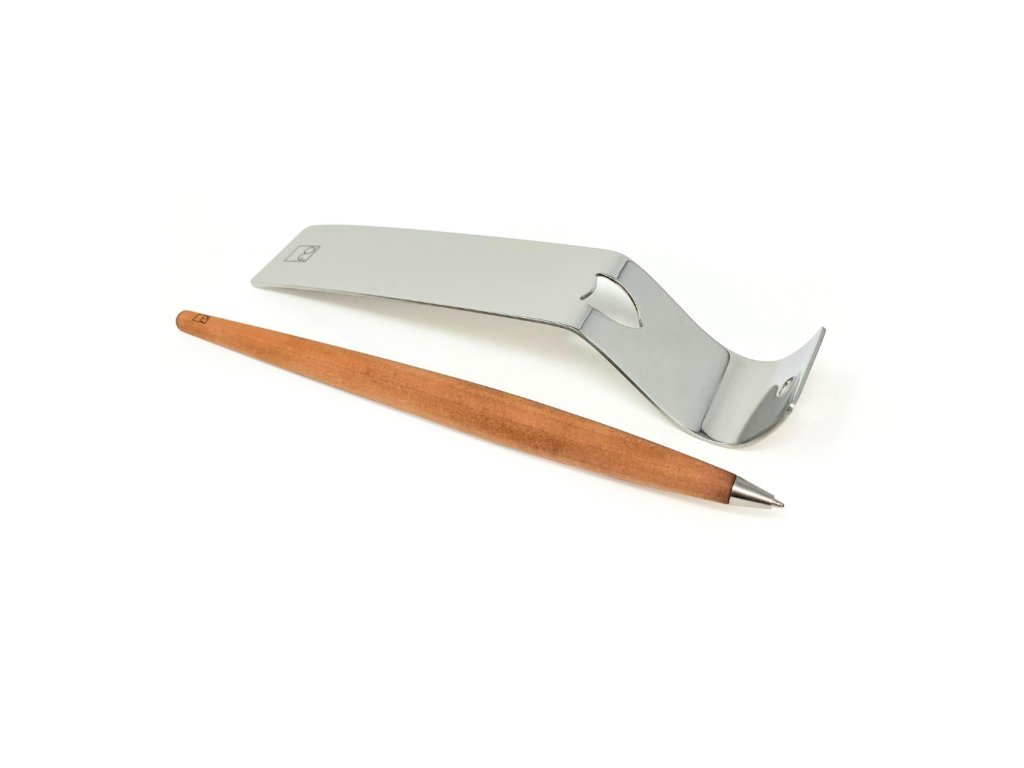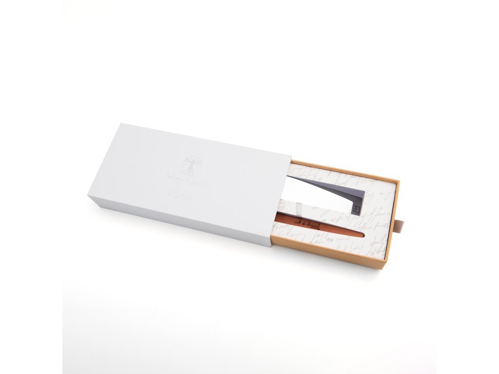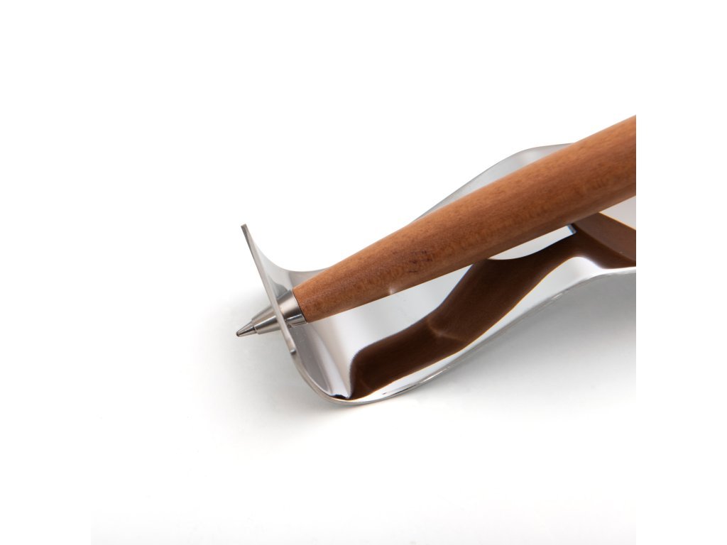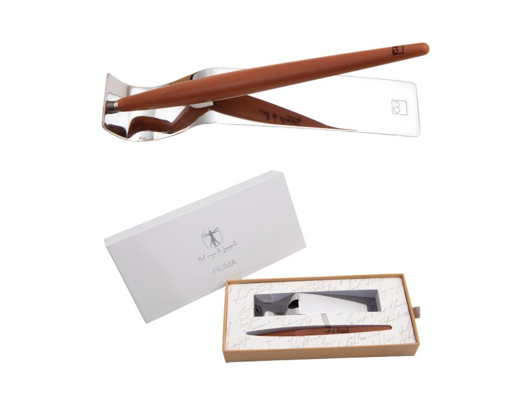 Design inspirovaný Leonardem, tvar připomínající brk a průkopnické studie Leonarda da Vinci o létání. Tělo je vyrobené z masivního hrušňového v kombinaci s nerezovou základnou. Pero je vybaveno standardní kuličkovou náplní Schmidt S635 D1 pro přesnost a plynulost. Vyrobeno kompletně ručně s péčí a precizností – představuje to nejlepší z italského řemeslného umění. Ideální jako dárek.