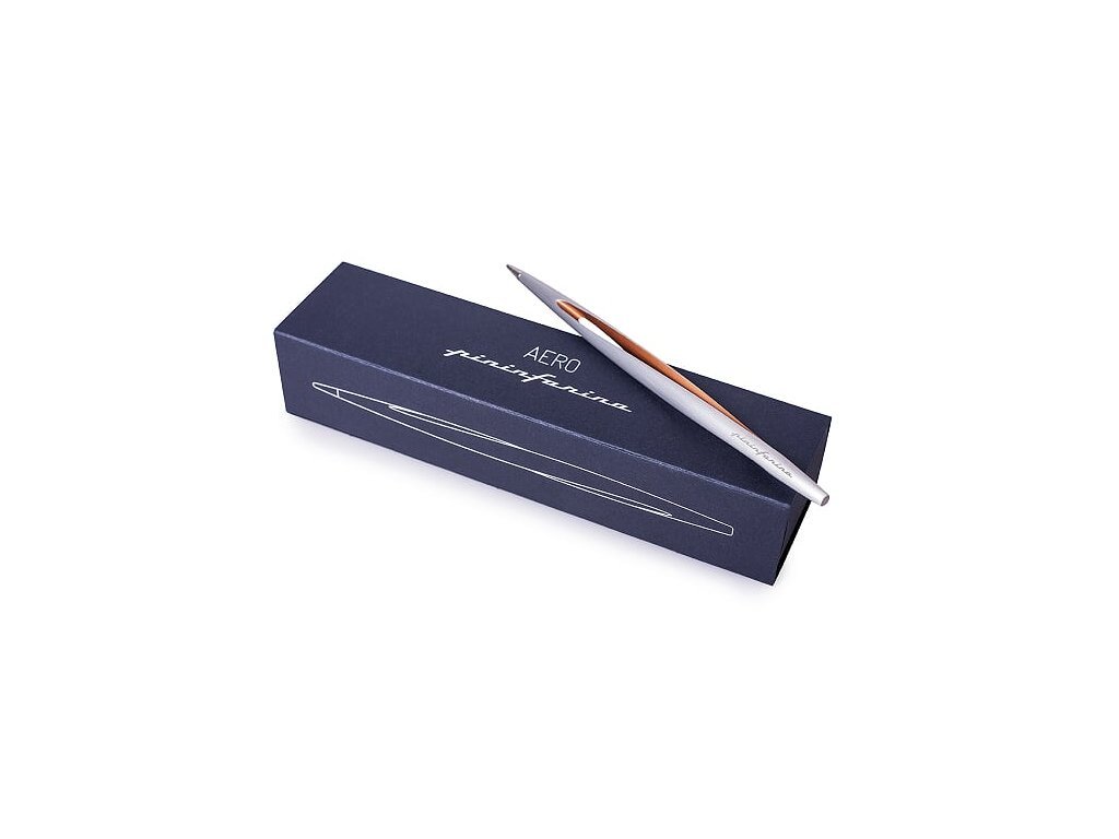 Spojením mezi designem, technologií, tradicí a inovací vzniká Pininfarina Aero. Tělo vyrobené z exkluzivního hliníku, používaného v letecké výrobě, se pomocí torze formuje do tvaru ležaté osmičky, symbolu nekonečna. Právě díky použíti exkluzivního materiálu je váha samotného pera pouhých 17 g. Jako kontrast pak působí stojánek z tvrdého betonu. Dva naprosto odlišné materiály, protiklady, které se doplňují a přitahují. Celek má symbolizovat překonání bariéry času. Svým zpracováním oživí jakýkoliv moderní prostor a podtrhne jeho nadčasovost.