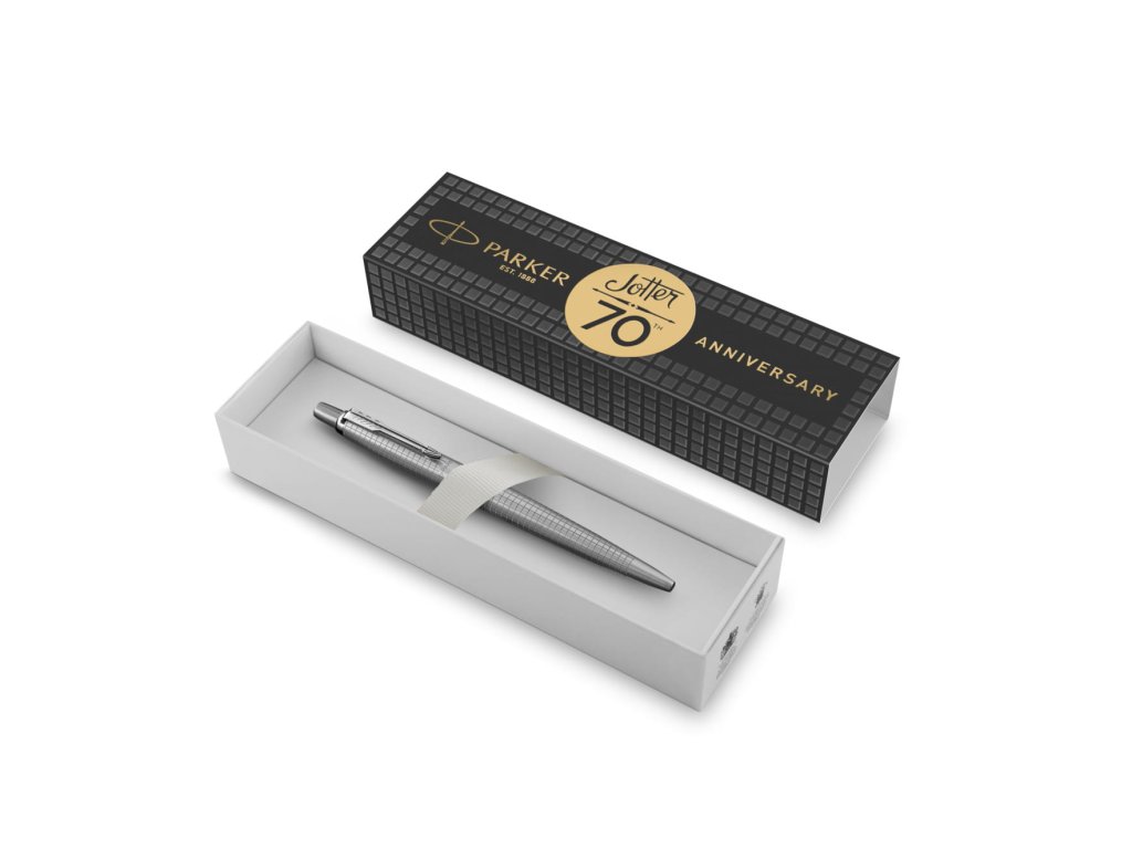 Modelová řada Jotter byla na trh uvedena v roce 1954 a dodnes se díky své nadčasové a elegantní siluetě těší mimořádné oblibě. V roce 2024 tato designová ikona oslaví 70. výročí a právě při této příležitosti Parker uvádí speciální edici Jotter 70th Anniversary. Dnes již klasické provedení z nerezové oceli je u tohoto modelu doplněno dalším pro značku Parker typickým prvkem – gravírovaným vzorem „Ciselé“. Parker Jotter je designérskou klasikou a důvěrně známou modelovou řadou, oceňovanou zejména pro svou kvalitu, spolehlivost a příznivý poměr ceny a výkonu. Jedná se o nadčasový model, který i díky široké nabídce povrchových provedení a praktickému, jednoduchému tvaru patří mezi nejoblíbenější.