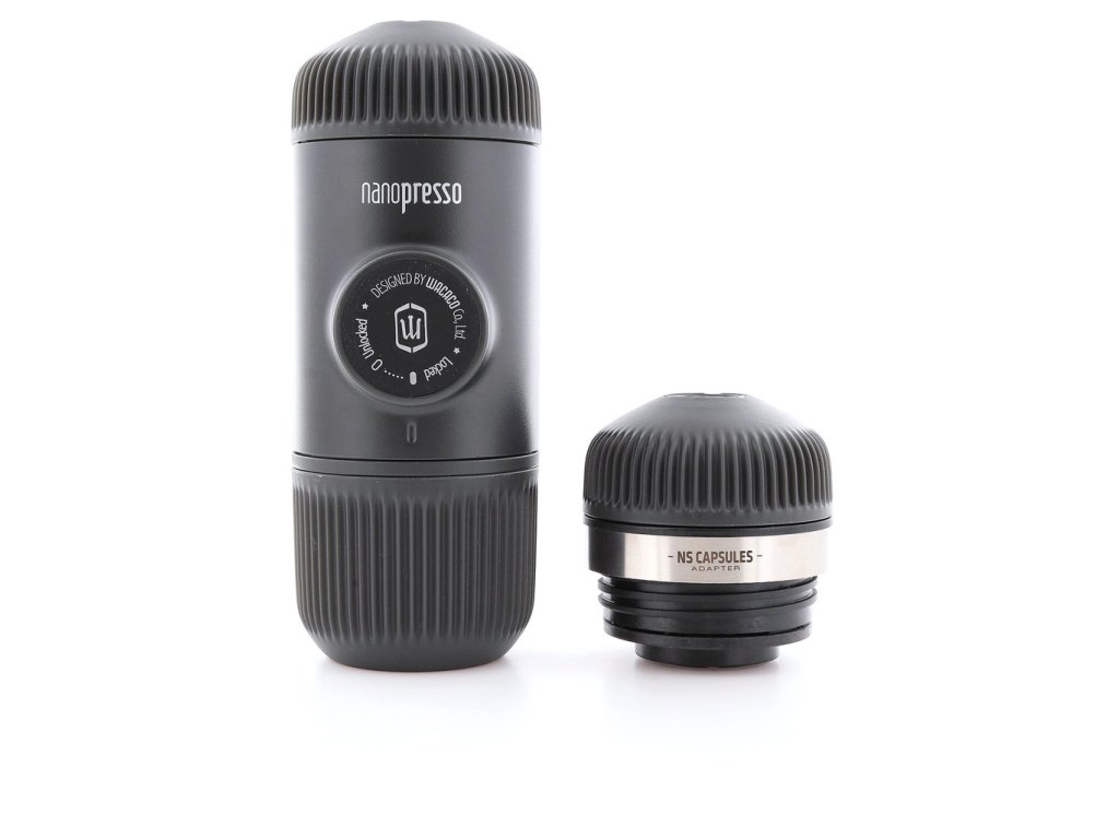 Adaptér k presovači WACACO Nanopresso umožňující použití kávových kapslí Nespresso namísto volné mleté kávy. Sada obsahuje adaptér a víko.