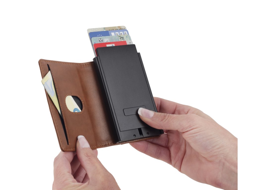 Pouzdro na bankovky a kreditní karty, 1 přihrádka na bankovky, 2 přihrádky na karty s ochranou proti podvodům (pro RFID čipy), pouzdro hladce svařované, imitace kůže.