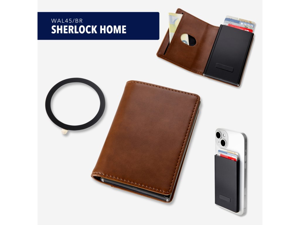 Peněženka 2 v 1 k připevnění na smartphone "Sherlock Home" hnědá