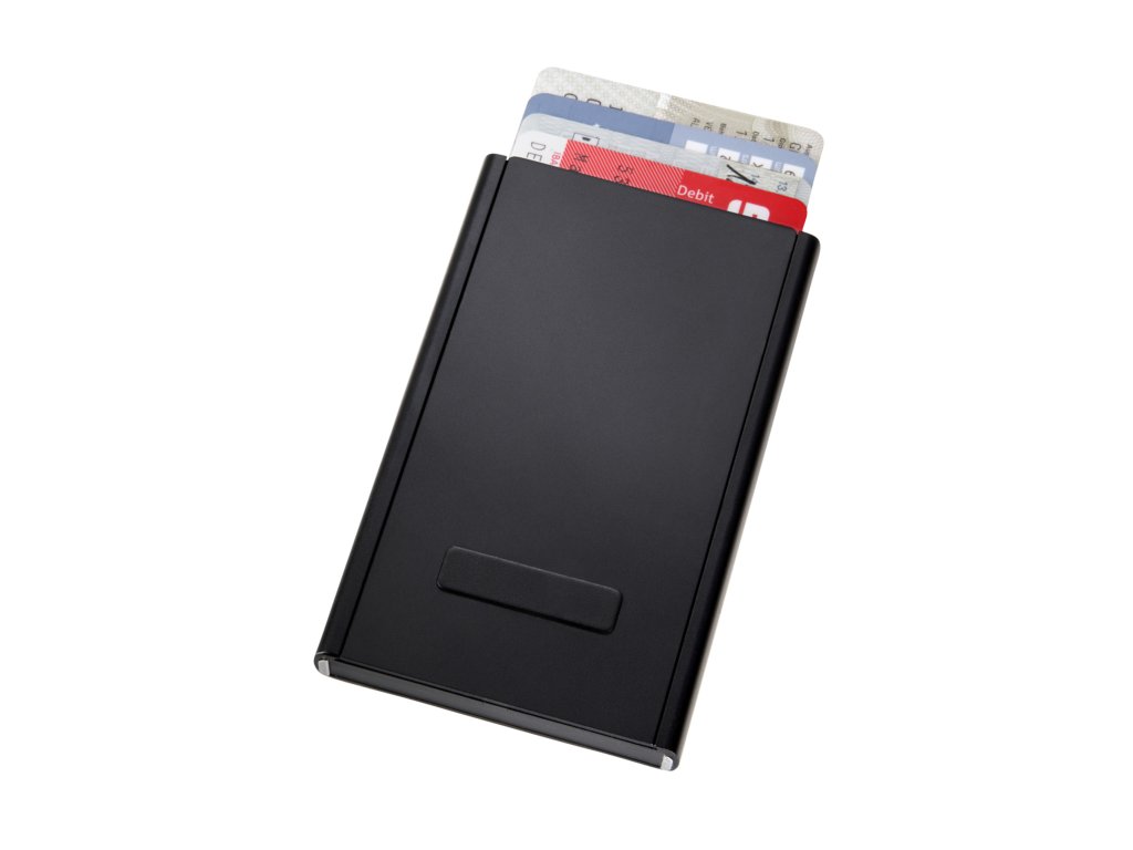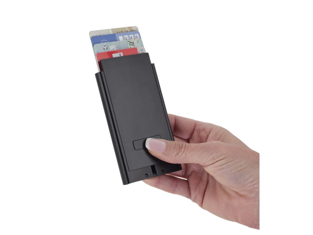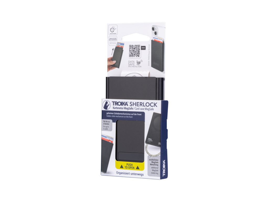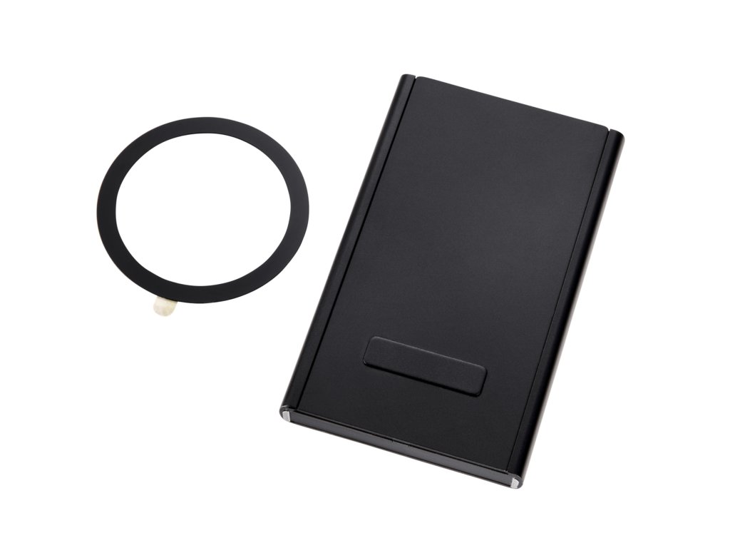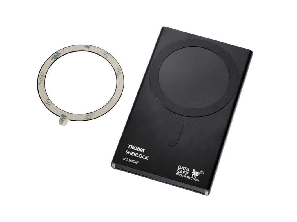 Pouzdro na karty až pro šest karet (řidičský průkaz, občanský průkaz, kreditní karta atd.), skrytý posuvný mechanismus na přední straně, ochrana RFID (proti skenování), silný magnet (N52) na zadní straně pro připevnění k telefonu, další samolepicí kovový kroužek MagSafe s lepicím povrchem 3M pro individuální připevnění, např. ke všem běžným smartphonům, pouzdrům, notebookům atd., hliník, černá.