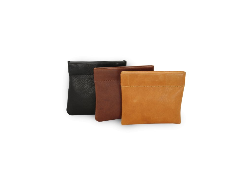 Světle hnědá kožená kapsa na mince s pružinou