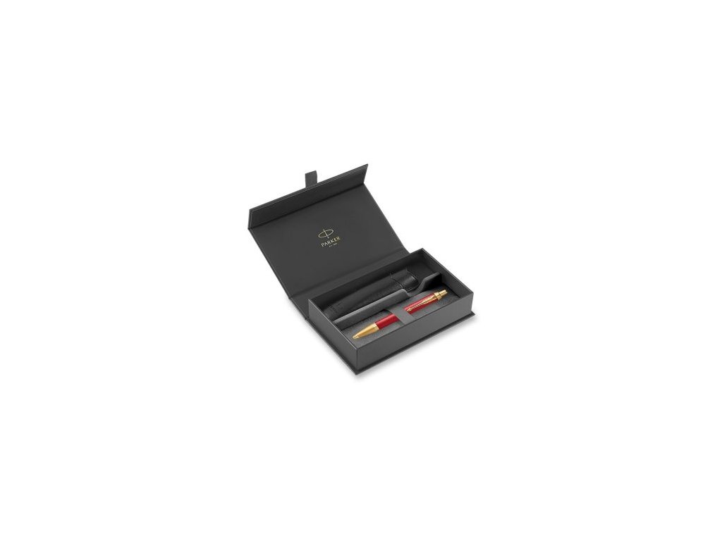 Parker IM Premium Red GT sada - kuličkové pero a kožené pouzdro