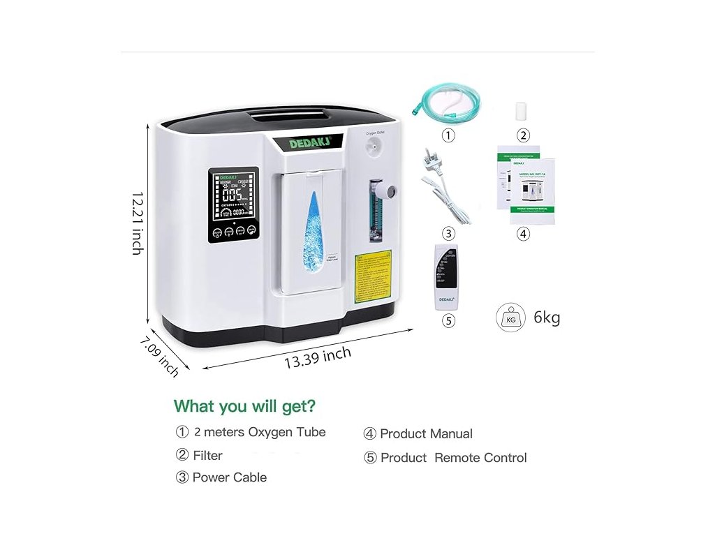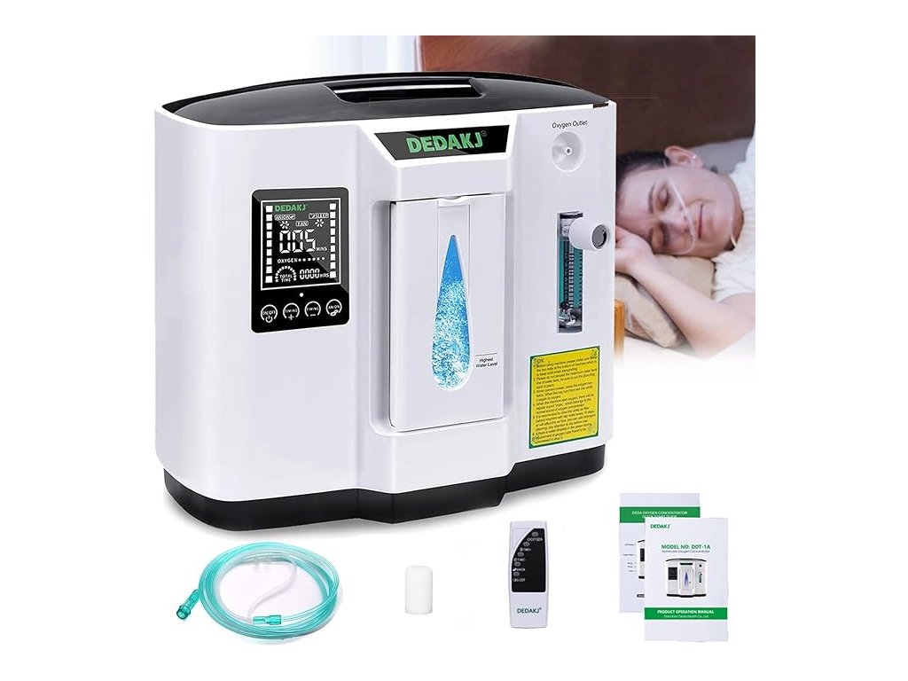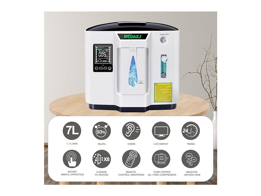 Nejnovější DEDAKJ DE-1A je koncentrátor, který produkuje sedm litrů kyslíku o koncentraci až 90 % za minutu.